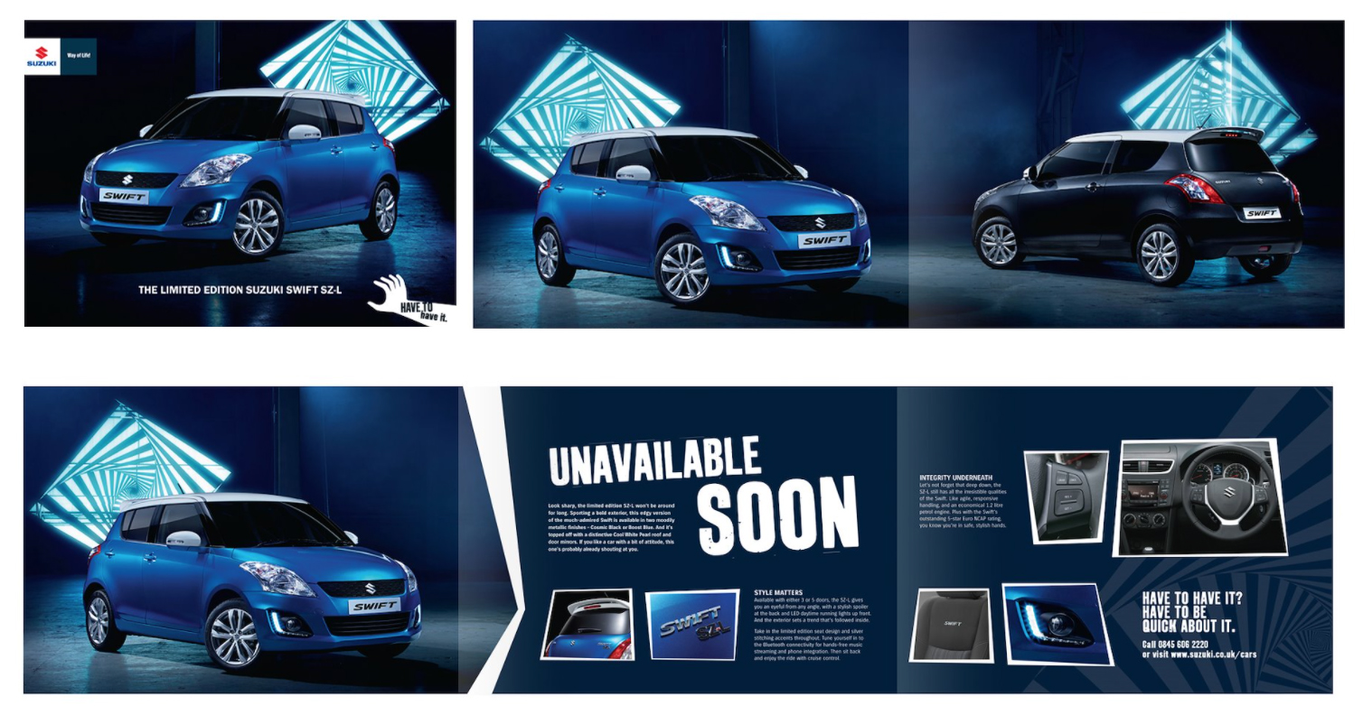 Suzuki truly is an all singing and all dancing account. From the launch of the Have To Have It campaign and beyond we created a fresh new brand for TV spots, OOH, Press, Digital, Social, Direct Mail, POS, CRM Programme, Brochures for the entire range and all new photography of every car, nationwide competitions with Suzuki Saturdays and everything in-between.